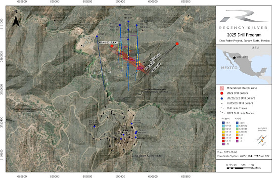 Regency Silver intercepts continuation of sulphide bearing breccia in 2025 drill program, Dios Padre project, Sonora, Mexico.